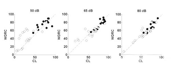 <span style="font-size:16px;"> 重度聽力損失是500Hz、1000Hz、2000Hz和4000Hz平均聽閾在61dB HL和80dB HL之間的聽力損失。重度聽損患者更趨向于:</span></p><p><span style="font-size:16px;"> (1)聽力損失時間較久;</span></p><p><span style="font-size:16px;"> ?。?)有助聽器佩戴史;</span></p><p><span style="font-size:16px;"> (3)言語分辨率較低;</span></p><p><span style="font-size:16px;"> (4)噪音環境中交流困難。</span></p><p><span style="font-size:16px;"> 1、重度聽力損失的特點</span></p><p><span style="font-size:16px;"> 60dB HL是單純外毛細胞損傷和內外毛細胞共同損傷的分界點,內毛細胞受損預示著重度聽力損失,這類患者的頻率選擇能力降低,在相關頻率范圍內難以分辨兩種聲音。這是噪聲環境下交流困難的主要原因。</span></p><p><span style="font-size:16px;"> 簡單來說,頻率選擇能力越低,自身降噪能力越差,噪聲下識別信號的能力也就越差。</span></p><center><span style="font-size:16px;"><img alt="" src="/upfiles/20181016012659501.png" width="440" height="250" /></span></center><p></p><p><span style="font-size:16px;"> 2、選擇合適的放大策略</span></p><p><span style="font-size:16px;"> 反饋抑制:這項技術在傳統方法的基礎上有更好的減少嘯叫的效果。</span></p><p><span style="font-size:16px;"> 指向性麥克風:有指向性功能的助聽器可以明顯提高信噪比(SNR)?,F在自適應指向性麥克風廣泛地應用于大功率耳背機中。</span></p><p><span style="font-size:16px;"> 對于噪聲下言語交流困難的重度聽力損失患者,選配帶有指向性麥克風的助聽器效果顯著。</span></p><p><span style="font-size:16px;"> 聽力學家對重度聽損人士的指向性麥克風做過獲益度測試,發現平均言語識別能力提升了14%。</span></p><p><span style="font-size:16px;"> 重度聽損患者使用指向性功能時必須保證一定低頻增益,否則他們會感覺聲音不夠洪亮。</span></p><center><span style="font-size:16px;"><img alt="" src="/upfiles/201810160127134771.png" width="440" height="250" /></span></center><p></p><p><span style="font-size:16px;"> 寬動態范圍壓縮線路(WDRC):</span></p><p><span style="font-size:16px;"> 如下圖,白點是重度聽力損失患者的輔音識別得分,黑點是輕度至中度聽損患者的輔音識別得分;每位受試者佩戴四通道的耳背機,驗配采用NAL公式;測試言語聲強度分別為50dB SPL、65dB SPL和80dB SPL;比較WDRC和線性輸出壓縮限制(CL)兩種線路的得分。</span></p><center><span style="font-size:16px;"><img alt="" src="/upfiles/201810160127198326.png" width="600" height="240" /></span></center><p></p><p><span style="font-size:16px;"> 等分位于對角線附近代表兩種處理方式效果相似,得分位于對角線上方表示WDRC線路效果更好,而下方則表示CL線路效果更好。</span></p><p><span style="font-size:16px;"> 對重度聽損患者來說,輸入輕聲和中等聲時WDRC線路比CL線路效果更好;輸入響聲時兩種線路的區別并不大。所以使用WDRC線路可以獲得比CL線路更高的言語識別率。</span></p><p><span style="font-size:16px;"> 壓縮速度:壓縮越深可聽度越高,因為患者可以聽到更寬的聲音響度范圍。</span></p><p><span style="font-size:16px;"> 快反應壓縮(起效和釋放時間很短)可以降低元音(響度較大)增益并提高輔音(響度較小)增益,從而提高可聽度。</span></p><p><span style="font-size:16px;"> 所以理論上來講,對于重度聽損人士,使用多通道助聽器、低壓縮拐點、高壓縮比、音節壓縮,可以最大程度提高驗配效果。</span></p><center><span style="font-size:16px;"><img alt="" src="/upfiles/201810160127304305.png" width="600" height="500" /></span></center><p></p><p><span style="font-size:16px;"> 但壓縮越深就意味著有聲音失真越大,音節壓縮丟失了重要言語信息,導致輔音分辨不清。若要保留這些信息,則需要慢反應壓縮(起效和釋放時間較長)。</span></p><p><span style="font-size:16px;"> 最好的情況是在提高可聽度的同時還保證信號不失真,但目前很難實現,找到二者的平衡點是最佳的選配方案。</span></p><center><span style="font-size:16px;"><img alt="" src="/upfiles/20181016012736476.png" width="440" height="250" /></span></center><p></p><p><span style="font-size:16px;"> 上圖為一組重度聽力損失患者選配快速和慢速WDRC線路的言語識別率對比。</span></p><p><span style="font-size:16px;"> 在輸入聲級為50和65 dB SPL時,快反應壓縮線路的受試者得分明顯比慢反應壓縮線路的受試者差;在80 dB SPL輸入聲級下則并無明顯差別。</span></p><p><span style="font-size:16px;"> 對輕度和中度聽力損失患者來說,無論何種輸入聲級,兩種壓縮方式的得分都沒有明顯差別(并未在圖中顯示)。</span></p><p><span style="font-size:16px;"> 對極重度聽力損失患者來說,可聽度比其他任何信息都重要,快反應壓縮線路效果比慢反應壓縮線路更好。</span></p><p><span style="font-size:16px;"> 綜上所述,在使用多通道WDRC線路助聽器前提下,一定程度的可聽度是必須的,在這個基礎上要追求最低的失真(最低的壓縮比以及最慢的壓縮),才能達到最好的驗配效果。</span></p><p><span style="font-size:16px;"> 我們經常會遇到重度聽力損失患者,應該找到適合他們的驗配策略并提供心理和生理咨詢。</span></p><p><span style="font-size:16px;"> 助聽器選配的效果受到外周及中樞聽覺系統的能力限制,重度感音神經性聽力損失患者很少能在噪音環境中聽清。</span></p><p><span style="font-size:16px;"> 但是,通過仔細的驗配和回訪調試,我們依然可以取得很好的效果。重度聽力損失患者體現了聽覺系統的復雜性,提醒我們僅