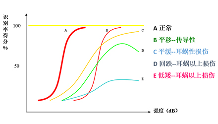 雖然聽力無多大影響,但是長期下來,聽力損失可能由C變為了D的回跌型,甚至是E的低矮型。也就是,即便聲音都聽到了,但由于言語識別能力大大下降,聽不清~楚!