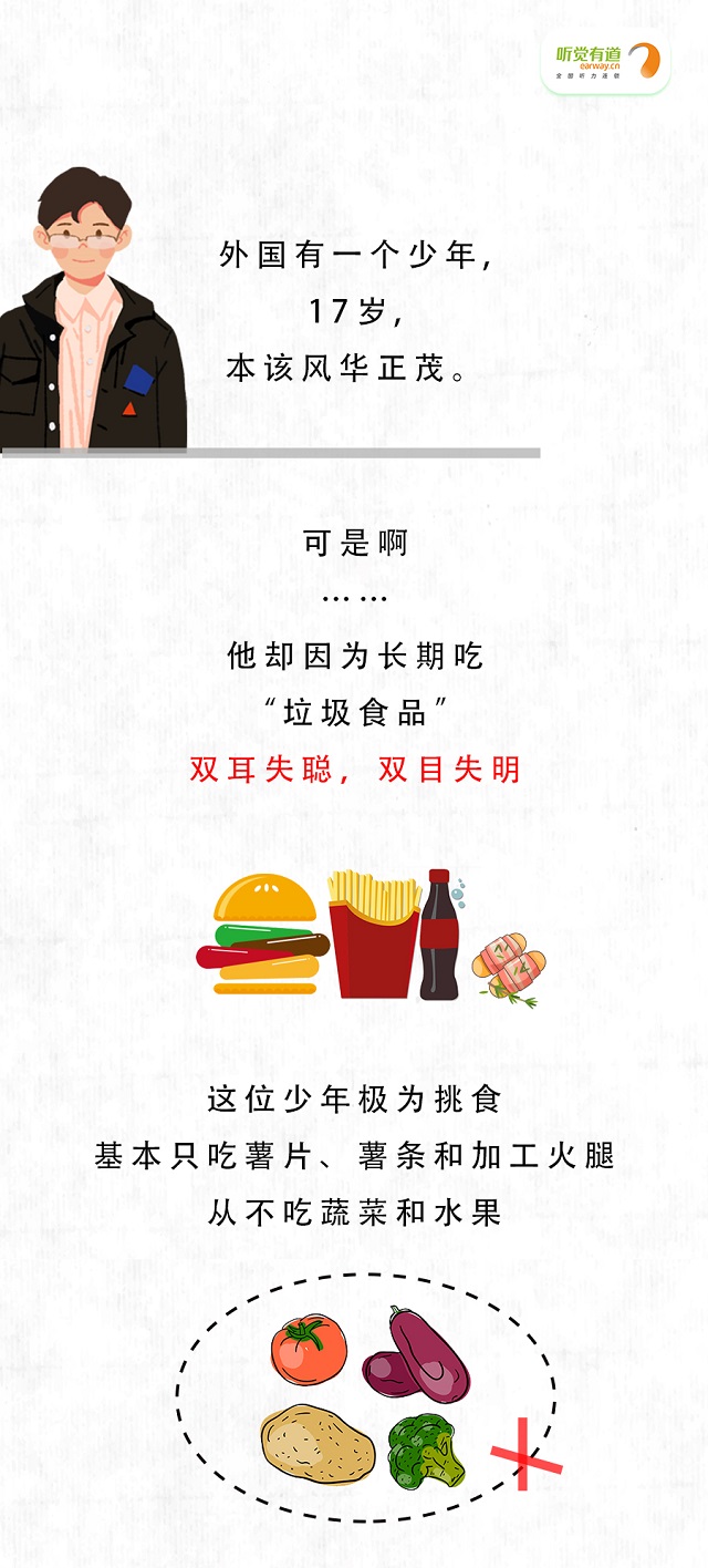 英國17歲少年常年只吃“垃圾食品”,最后聽力下降雙目失明