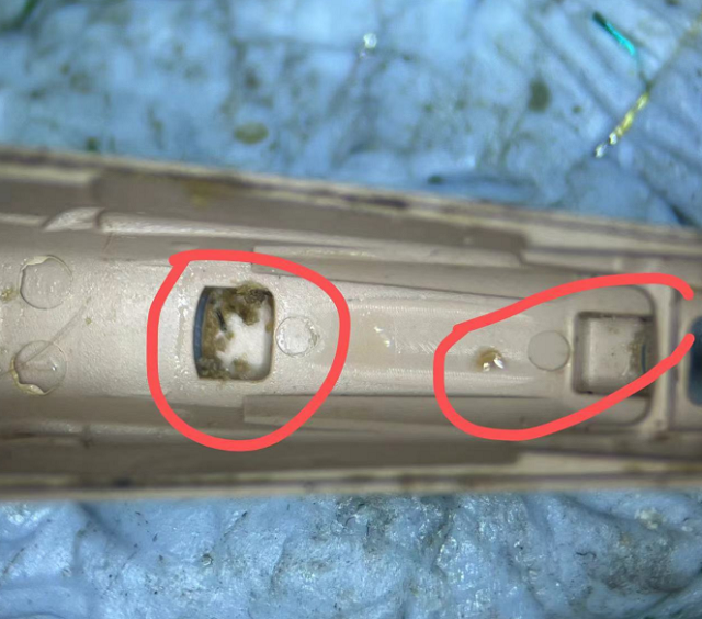 出聲孔、麥克風口、電池倉、旋鈕等位置有這些異物堆積,可能會使助聽器聲音變小,甚至無聲,助聽器老化,縮短助聽器的壽命!
