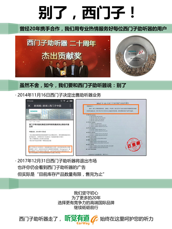 <p microsoft="" yahei="" ui="" simsun="" segoe="" tahoma="" helvetica="" sans-serif="" font-size:="" 14px="" text-align:="" center="" style="padding: 5px 0px; margin: 0px; color: rgb(51, 51, 51); font-family: "Microsoft YaHei UI", "Microsoft YaHei", SimSun, "Segoe UI", Tahoma, Helvetica, sans-serif; font-size: 16px; text-align: center;"><img src="http://m.cqzzjd.cn/upfiles/201712110502357735.jpg" alt="" style="border: 0px;" /></p><p microsoft="" yahei="" ui="" simsun="" segoe="" tahoma="" helvetica="" sans-serif="" font-size:="" 14px="" text-align:="" center="" style="padding: 5px 0px; margin: 0px; color: rgb(51, 51, 51); font-family: "Microsoft YaHei UI", "Microsoft YaHei", SimSun, "Segoe UI", Tahoma, Helvetica, sans-serif; font-size: 16px; text-align: center;"><br /></p><p microsoft="" yahei="" ui="" simsun="" segoe="" tahoma="" helvetica="" sans-serif="" font-size:="" 14px="" text-align:="" center="" style="padding: 5px 0px; margin: 0px; color: rgb(51, 51, 51); font-family: "Microsoft YaHei UI", "Microsoft YaHei", SimSun, "Segoe UI", Tahoma, Helvetica, sans-serif; font-size: 16px; text-align: center;"><img src="http://m.cqzzjd.cn/upfiles/201712201117438957.jpg" alt="" style="border: 0px;" /><br /></p><p microsoft="" yahei="" ui="" simsun="" segoe="" tahoma="" helvetica="" sans-serif="" font-size:="" 14px="" text-align:="" center="" style="padding: 5px 0px; margin: 0px; color: rgb(51, 51, 51); font-family: "Microsoft YaHei UI", "Microsoft YaHei", SimSun, "Segoe UI", Tahoma, Helvetica, sans-serif; font-size: 16px; text-align: center;"><br /></p><p microsoft="" yahei="" ui="" simsun="" segoe="" tahoma="" helvetica="" sans-serif="" font-size:="" 14px="" text-align:="" center="" style="padding: 5px 0px; margin: 0px; color: rgb(51, 51, 51); font-family: "Microsoft YaHei UI", "Microsoft YaHei", SimSun, "Segoe UI", Tahoma, Helvetica, sans-serif; font-size: 16px; text-align: center;">2014年11月16日西門子決定出售助聽器業(yè)務</p><p microsoft="" yahei="" ui="" simsun="" segoe="" tahoma="" helvetica="" sans-serif="" font-size:="" 14px="" text-align:="" center="" style="padding: 5px 0px; margin: 0px; color: rgb(51, 51, 51); font-family: "Microsoft YaHei UI", "Microsoft YaHei", SimSun, "Segoe UI", Tahoma, Helvetica, sans-serif; font-size: 16px; text-align: center;"> </p><center microsoft="" yahei="" ui="" simsun="" segoe="" tahoma="" helvetica="" sans-serif="" font-size:="" 14px="" style="color: rgb(51, 51, 51); font-family: "Microsoft YaHei UI", "Microsoft YaHei", SimSun, "Segoe UI", Tahoma, Helvetica, sans-serif; font-size: 16px;"><img src="http://m.cqzzjd.cn/upfiles/20171211050740709.jpg" alt="" style="border: 0px;" /><br /></center><center microsoft="" yahei="" ui="" simsun="" segoe="" tahoma="" helvetica="" sans-serif="" font-size:="" 14px="" style="color: rgb(51, 51, 51); font-family: "Microsoft YaHei UI", "Microsoft YaHei", SimSun, "Segoe UI", Tahoma, Helvetica, sans-serif; font-size: 16px;"><br /></center><p microsoft="" yahei="" ui="" simsun="" segoe="" tahoma="" helvetica="" sans-serif="" font-size:="" 14px="" text-align:="" center="" style="padding: 5px 0px; margin: 0px; color: rgb(51, 51, 51); font-family: "Microsoft YaHei UI", "Microsoft YaHei", SimSun, "Segoe UI", Tahoma, Helvetica, sans-serif; font-size: 16px; text-align: center;">2017年12月31日西門子助聽器將正式退出中國市場</p><p microsoft="" yahei="" ui="" simsun="" segoe="" tahoma="" helvetica="" sans-serif="" font-size:="" 14px="" text-align:="" center="" style="padding: 5px 0px; margin: 0px; color: rgb(51, 51, 51); font-family: "Microsoft YaHei UI", "Microsoft YaHei", SimSun, "Segoe UI", Tahoma, Helvetica, sans-serif; font-size: 16px; text-align: center;"> </p><center microsoft="" yahei="" ui="" simsun="" segoe="" tahoma="" helvetica="" sans-serif="" font-size:="" 14px="" style="color: rgb(51, 51, 51); font-family: "Microsoft YaHei UI", "Microsoft YaHei", SimSun, "Segoe UI", Tahoma, Helvetica, sans-serif; font-size: 16px;"><img src="http://m.cqzzjd.cn/upfiles/201712110508305244.png" alt="" style="border: 0px;" /><br /></center><center microsoft="" yahei="" ui="" simsun="" segoe="" tahoma="" helvetica="" sans-serif="" font-size:="" 14px="" style="color: rgb(51, 51, 51); font-family: "Microsoft YaHei UI", "Microsoft YaHei", SimSun, "Segoe UI", Tahoma, Helvetica, sans-serif; font-size: 16px;"><br /></center><p microsoft="" yahei="" ui="" simsun="" segoe="" tahoma="" helvetica="" sans-serif="" font-size:="" 14px="" text-align:="" center="" style="padding: 5px 0px; margin: 0px; color: rgb(51, 51, 51); font-family: "Microsoft YaHei UI", "Microsoft YaHei", SimSun, "Segoe UI", Tahoma, Helvetica, sans-serif; font-size: 16px; text-align: center;">銀河系、交響樂、薩克斯、新音樂、荷悅、睿蓮、蓮花、心動……</p><p microsoft="" yahei="" ui="" simsun="" segoe="" tahoma="" helvetica="" sans-serif="" font-size:="" 14px="" text-align:="" center="" style="padding: 5px 0px; margin: 0px; color: rgb(51, 51, 51); font-family: "Microsoft YaHei UI", "Microsoft YaHei", SimSun, "Segoe UI", Tahoma, Helvetica, sans-serif; font-size: 16px; text-align: center;">西門子助聽器系列產(chǎn)品悉數(shù)退市</p><p microsoft="" yahei="" ui="" simsun="" segoe="" tahoma="" helvetica="" sans-serif="" font-size:="" 14px="" text-align:="" center="" style="padding: 5px 0px; margin: 0px; color: rgb(51, 51, 51); font-family: "Microsoft YaHei UI", "Microsoft YaHei", SimSun, "Segoe UI", Tahoma, Helvetica, sans-serif; font-size: 16px; text-align: center;"> </p><center microsoft="" yahei="" ui="" simsun="" segoe="" tahoma="" helvetica="" sans-serif="" font-size:="" 14px="" style="color: rgb(51, 51, 51); font-family: "Microsoft YaHei UI", "Microsoft YaHei", SimSun, "Segoe UI", Tahoma, Helvetica, sans-serif; font-size: 16px;"><img src="http://m.cqzzjd.cn/upfiles/201712110509096639.jpg" alt="" style="border: 0px;" /><br /></center><p microsoft="" yahei="" ui="" simsun="" segoe="" tahoma="" helvetica="" sa