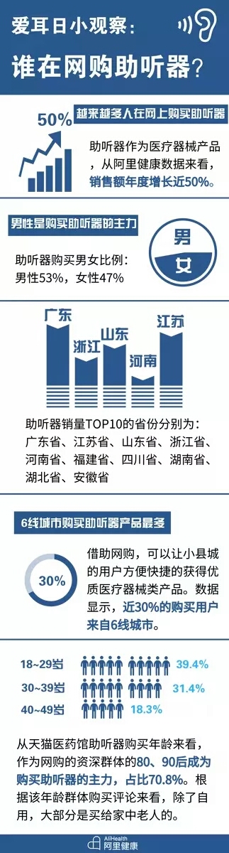 阿里巴巴旗下阿里健康發(fā)布了在淘寶、天貓等平臺上的助聽器線上銷售數(shù)據(jù),顯示助聽器類產(chǎn)品年銷售額度增長60%,廣東、江蘇、山東三省成為購買助聽器最多的省份;近30%的助聽器購買用戶來自人口20~50萬之間的小縣城,成為最大購買區(qū)域。<br /> 但是這份數(shù)據(jù),究竟打了誰的臉?<br /> 我們知道,助聽器的專業(yè)驗配目前是很難完全在線上完成的,更別說聽力檢查,調(diào)試和評估了,但是我們打開淘寶搜索助聽器,大量廉價助聽器撲面而來,價格多在兩三百元之間,這樣的助聽器,按商品介紹說直接買回家佩戴即可,下面也是各種好評如潮,但是這樣的助聽器真能幫助我們解決聽力問題嗎?<br /> 近年來,家用醫(yī)療器械電商發(fā)展迅速,線上渠道逐漸成為家用醫(yī)療器械的銷售主渠道之一。越來越多人,開始通過網(wǎng)購選購助聽器,根據(jù)統(tǒng)計顯示,僅僅天貓醫(yī)藥平臺,網(wǎng)購助聽器類產(chǎn)品的年銷售額就增長近50%。<br /> 從某種程度來說,網(wǎng)購平臺甚至成為了很多人了解助聽器知識的第一渠道,這對于很多專業(yè)聽力機構來說,是多么令人傷心的事情。<br /> 從阿里健康發(fā)布的數(shù)據(jù)來看:男性用戶購買者領先,占了53%。作為網(wǎng)購的資深群體,80~90后成為購買助聽器的主力,占比70.8%。根據(jù)該年齡群體購買評論觀察,除了自用外,大部分是賣給家中老年人的。<br /></span><p><span style="font-size:16px;"> 阿里健康發(fā)布的統(tǒng)計資料:</span></p><p><span style="font-size:16px;"><img src="/upfiles/201903210917476432.jpg" alt="" /><br /></span></p><span style="font-size:16px;"> 上圖資料來自阿里健康<br /> 盡管我們不斷呼吁,但目前的市場生態(tài)中助聽器的最大銷售渠道仍是線上。<br /> 那么為什么我們不建議在網(wǎng)上直接購買助聽器呢,有以下幾個原因。<br /> 1、助聽器適不適合你的耳朵,只有經(jīng)過專業(yè)驗配才能知道<br /> 很多人不清楚助聽器的聲音補償原理,以為是隨便買一個就能佩戴,但是我們要知道,每一只耳朵都是獨一無二的,所匹配的助聽器需要根據(jù)你的檢查結果來適配、來調(diào)試,甚至要做耳模,做評估。這些信息都無法在線上準確獲得,不考慮這些信息,你的設備效果就不會好。<br /> 2、助聽器的驗配,需要專業(yè)的驗配師來做<br /> 助聽器的驗配是整個銷售過程中最重要的環(huán)節(jié),只有經(jīng)過專業(yè)的調(diào)試才能達到好的效果。有人說,我可以遠程調(diào)試呀,當然,如果能做到,當然可以,不過目前在中國,99%的線上購買連詢問都沒有。這樣的驗配,豈不是和“非法行醫(yī)”一樣可怕。<br /> 3、聽力損失是一種疾病,需要認真對待<br /> 很多人對聽力知識了解不足,從本質(zhì)上并沒有認真對待,甚至連醫(yī)院或聽力中心都沒有去過,就直接從網(wǎng)上下單購買了,心里想著反正也就兩三百塊錢,大不了效果不好不戴就是了。<a href="http://m.cqzzjd.cn/listDetail.aspx?id=102601" target="_blank"><strong><span style="color:#3333ff;">保護聽力,不要成為聽障者中的一員!</span></strong></a><br /> 現(xiàn)在可以告訴你,聽力損失和你身體的其他疾病一樣,都理應獲得認真對待,最起碼,也應該去看看醫(yī)生或驗配師。<br /> 4、不是所有的聽力問題都能用助聽器解決<br /> 很多人想起要買助聽器,已經(jīng)是聽力損失發(fā)生幾年以后了,甚至有些人的聽力損失已經(jīng)很嚴重了,這時候僅僅依靠助聽器并不能解決所有問題。如果在網(wǎng)上購買助聽器,往往無法了解助聽器使用的局限性,也無法了解更多的康復知識,作為慢性病處理的角度,并不是買了助聽器就能一勞永逸。<br /> 5、專業(yè)人士的價值,不應僅僅體現(xiàn)在產(chǎn)品上<br /> 很多人在網(wǎng)上購買助聽器,是因為便宜,是因為方便,是抱著試一試的心態(tài)。但是我們想想,你都能相信素未謀面的網(wǎng)店,還不能相信面對面的助聽器驗配師嗎?助聽器驗配師的工作,沒有價值嗎?<br /> 這是助聽器行業(yè)的問題和痛點,也被很多人鉆了空子,但是對于聽力損失的人而言,驗配師的作用是不言而喻的。<br /></span><p><span style="font-size:16px;"> 雖然阿里健康“很驕傲”地發(fā)布了線上助聽器銷售的業(yè)績,但我們?nèi)砸粲酰郝犃栴},請到專業(yè)聽力機構解決。同時我們也要反思,為何整個聽力行業(yè),沒有能夠抓住機遇,通過更廣泛的方式向公眾科普正確的知識呢?</span></p><p><span style="font-size:16px;"> 相關推薦閱讀:<a href="http://m.cqzzjd.cn/listDetail.aspx?id=102635" target="_blank"><strong><span style="color:#3333ff;">聽覺有道教您如何選擇一臺適合又舒服的助聽器</span></strong></a><br /><br /> 聽覺有道助聽器價格:http://m.cqzzjd.cn/products.html<br /><br /><br /> 發(fā)布于2019年3月21日 星期四<br /> 上午9:23分<br /></span></p>" />