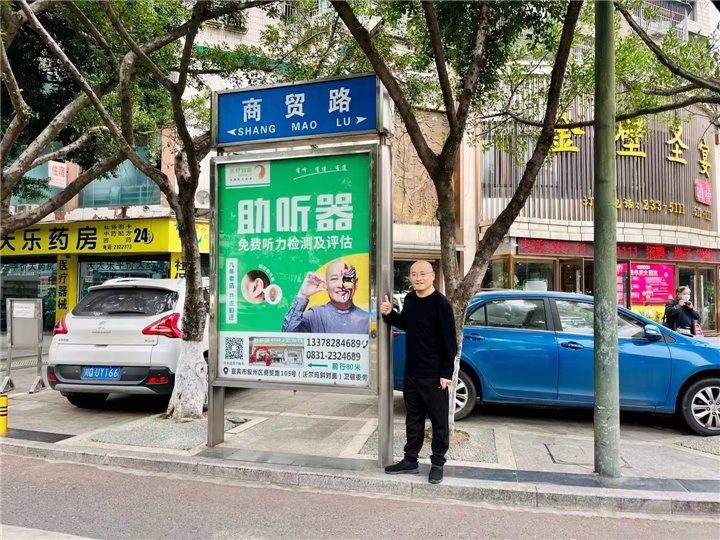 王總的川劇臉譜形象出現在藥店、診所、街角、站臺、公園、路過的車輛,以及聽覺有道各地門店,向社會公眾積極宣傳“關注聽力健康,聆聽美好生活”。