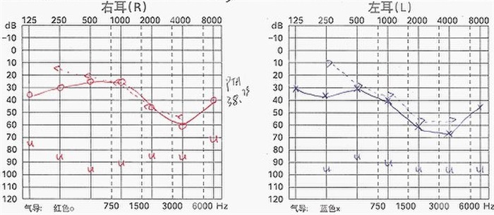 一個7歲的男孩子,左右耳聽力為: